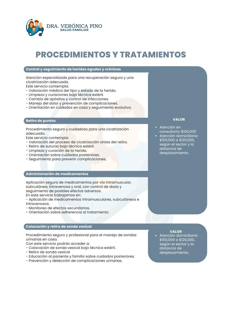 Procedimientos menores en casa (Curaciones, administración de medicamentos, control y seguimiento de heridas agudas y crónicas, retiro puntos, colocación y retiro sondas urinaria)