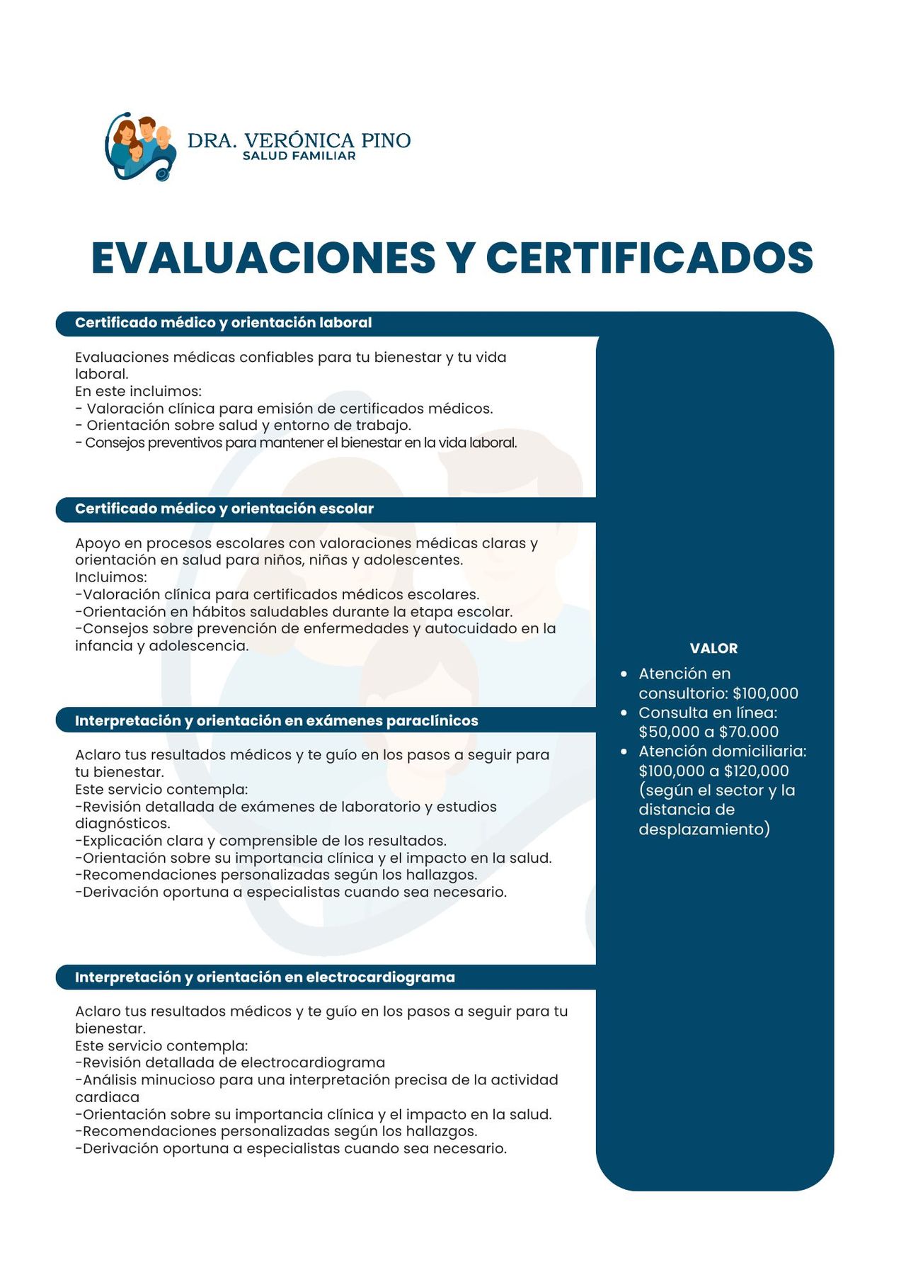 Certificados médicos y orientación laboral/escolar.
